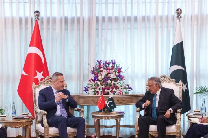 Türkiyə xarici işlər naziri Hakan Fidan Pakistanın paytaxtı İslamabad şəhərində Pakistanın xarici işlər naziri İshaq Dar ilə görüşüb.