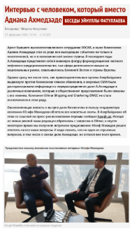 Tanınmış araşdırmaçı jurnalist, Azərbaycanın rusdilli populyar Haqqin.az portalının rəhbəri Eynulla Fətullayev həbs olunmuş biznesmen Adnan Əhmədzadənin bütün səhmlərini alan “Oilmar” şirkətinin rəhbəri, əsasən kölgədə rol alan iş adamı Yusif Məmmədovla görüşüb və ondan müsahibə alıb.