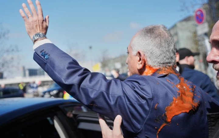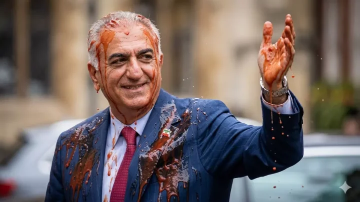 İranın mühacirətdə olan vəliəhdi Rza Pəhləvinin üzərinə boya atılıb.