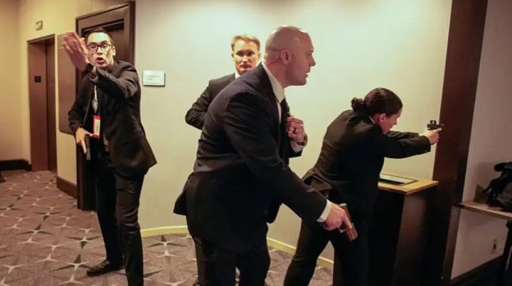 Məxfi Xidmət agentləri Prezidenti, birinci xanım Melaniya Trampı, Vitse-prezident Ceyms Devid Vensi və Ağ Evin mətbuat katibi Kerolayn Livitti zaldan çıxarıblar.