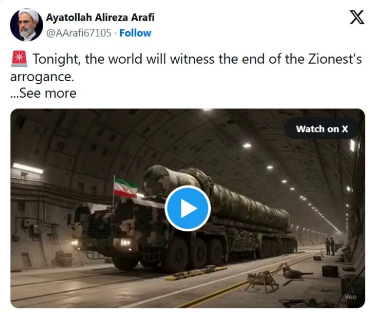 “Qafqazinfo” xəbər verir ki, bunu İran Ali Rəhbərinin vəzifəsini icra edən Ayətullah Əlirza Ərafi “X” hesabında yazıb.